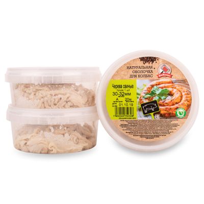 Черева свиные диаметром 30-32 мм подойдут для любого вида колбасок гриль, сосисок, варёнокопчёных колбас