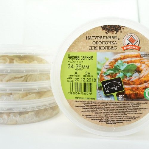 Черева свиные диаметром 34-36 мм хорошо подходят для изготовления любых видов колбас, как варёных так и копчёных. Длина в упаковке 5 метров. Благодаря механическому способу отчистки, черева идеально чистые. Метод сухого посола. При подготовке для набивки колбасы необходимо лишь промыть черева от посолочной смеси. При необходимости, можно отрезать необходимое количество черевы, а остальное оставить в надёжном ПЭТ контейнере и хранить в холодильнике/морозильнике.